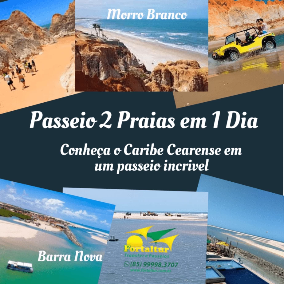 Conheça 2 praias incríveis no litoral leste do Ceará em um passeio imperdível para você, seu grupo ou família. As praias visitadas no dia são: (Morro Branco/Barra Nova), a primeira já bastante conhecida nacionalmente e até mundialmente mas a segunda ainda um lugar escondido do Ceará, onde você irá encontrar um verdadeiro paraíso de águas calmas e deliciosas para um excelente banho de mar, conhecida como o caribe cearense.